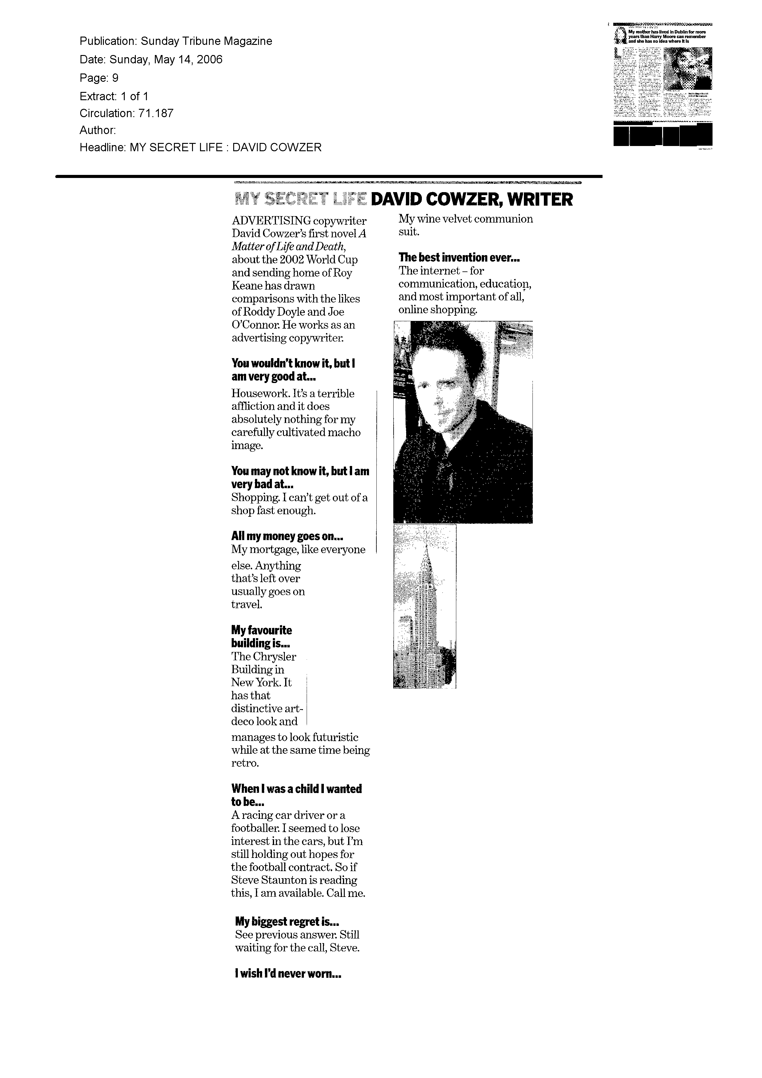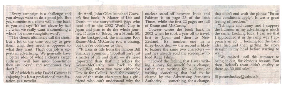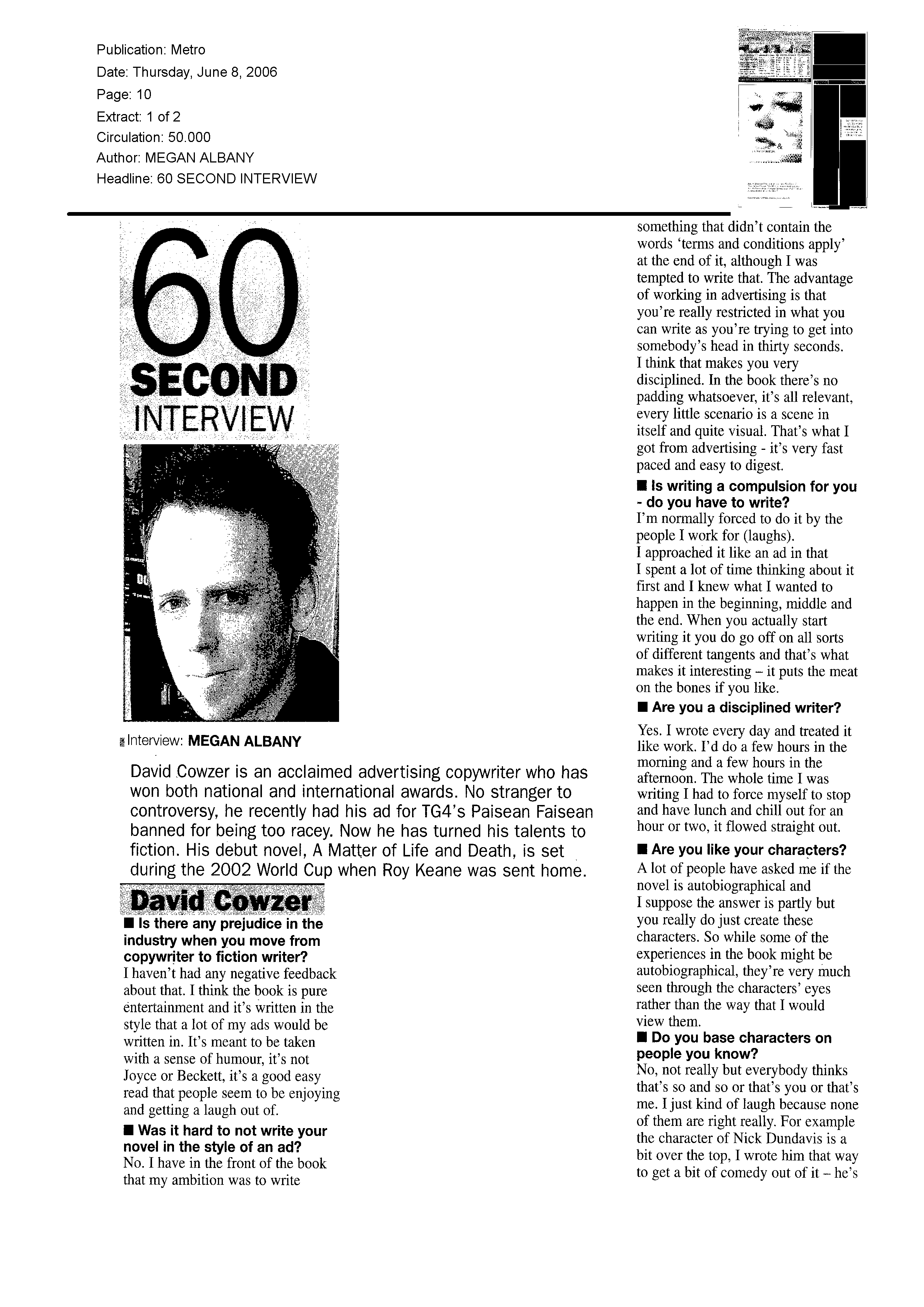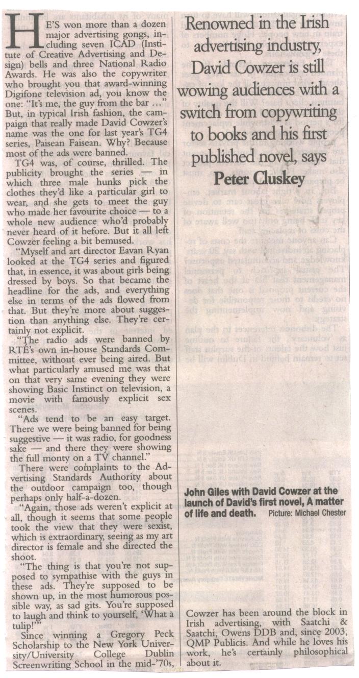David Cowzer has won more than 50 national and international awards for his advertising work to date.
